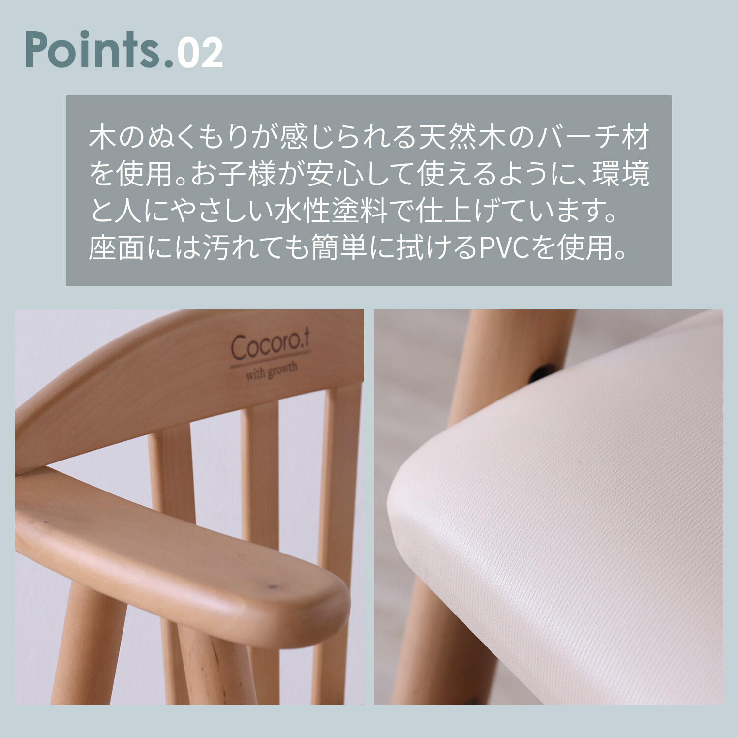 06.お子様が安心して使えるように、人と環境にやさしい水性塗料で仕上げています。