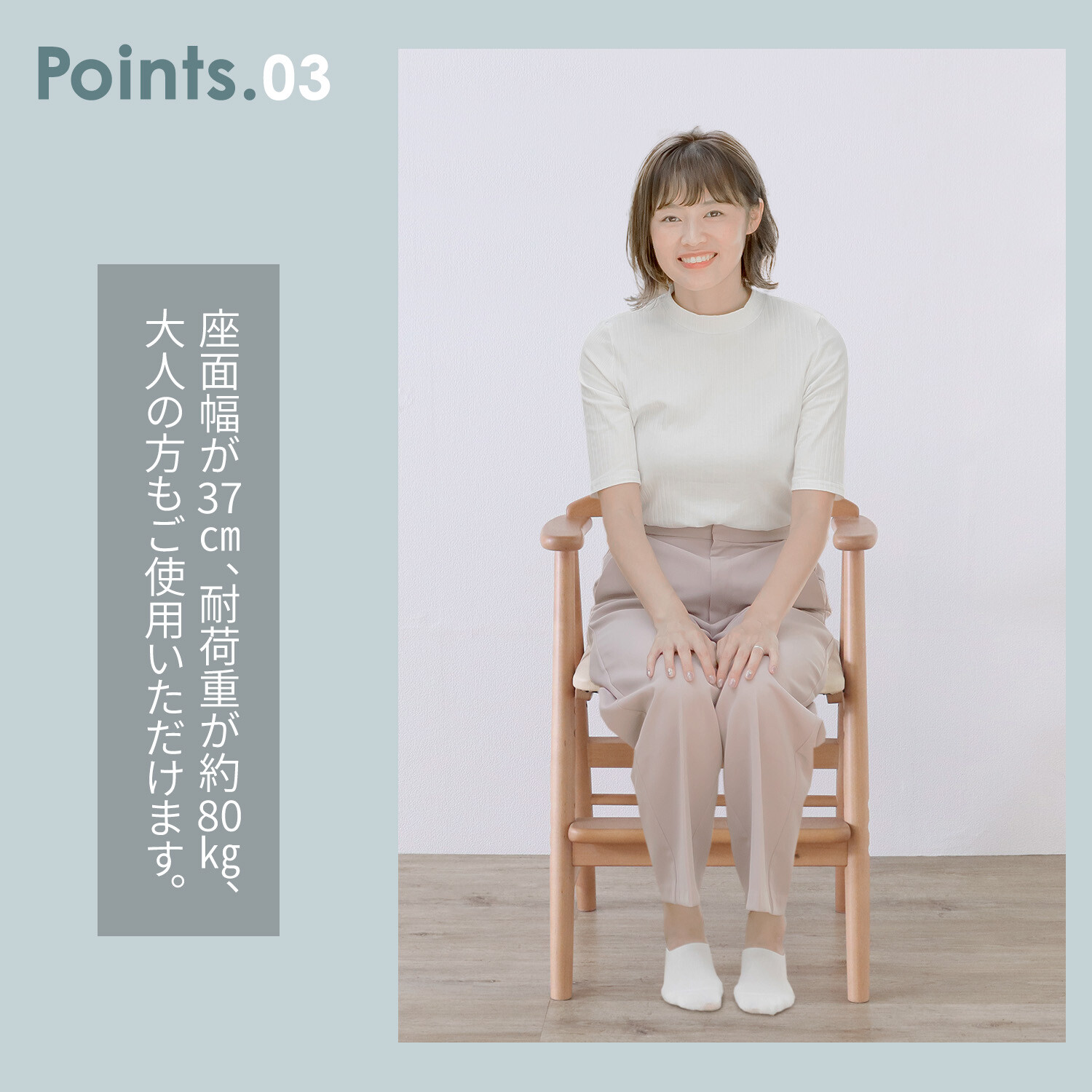 01.ワイドな座面で耐荷重は約80kg、大人の方もご使用いただけます。