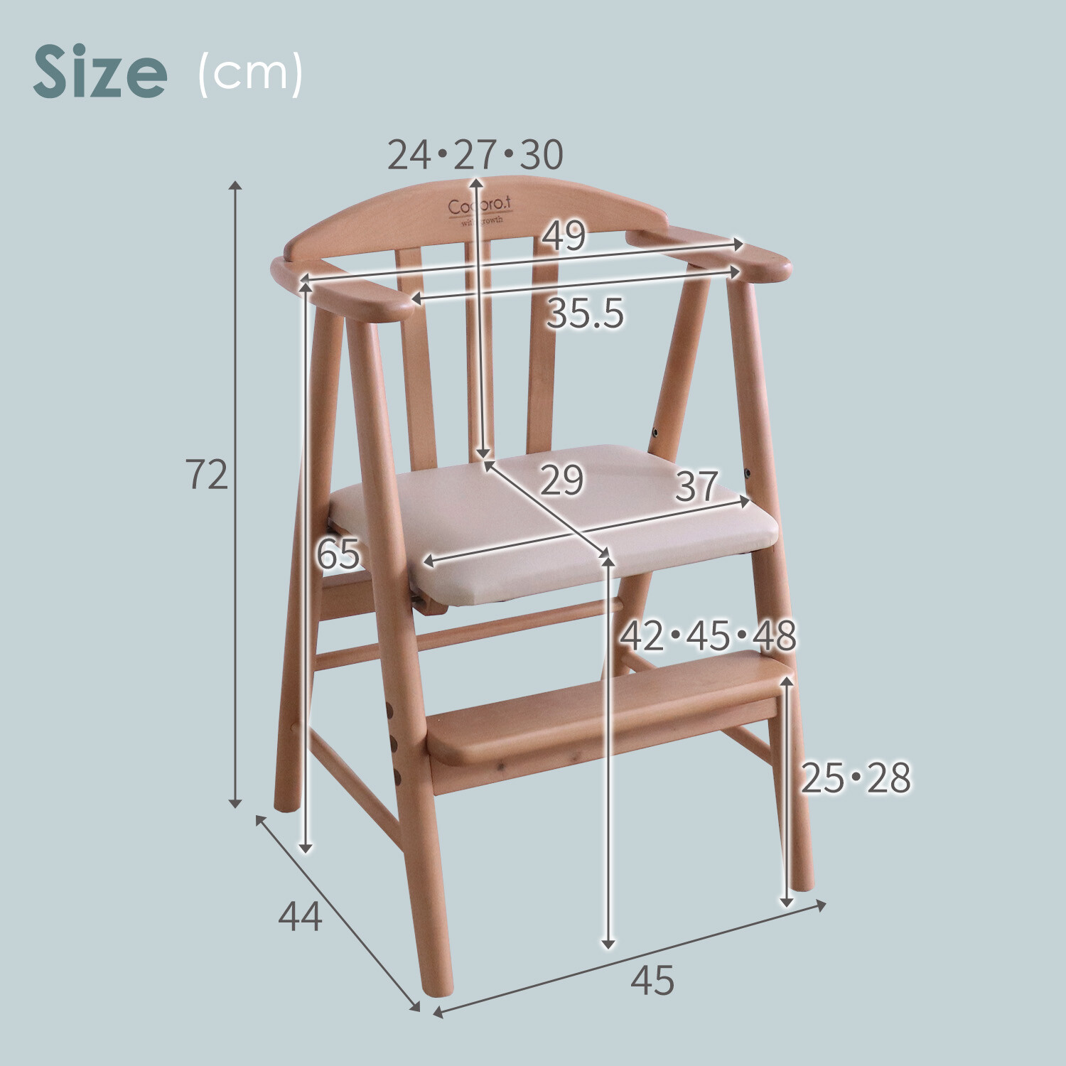 【サイズ】幅49×奥行44×高さ72×座面高42・45・48cm